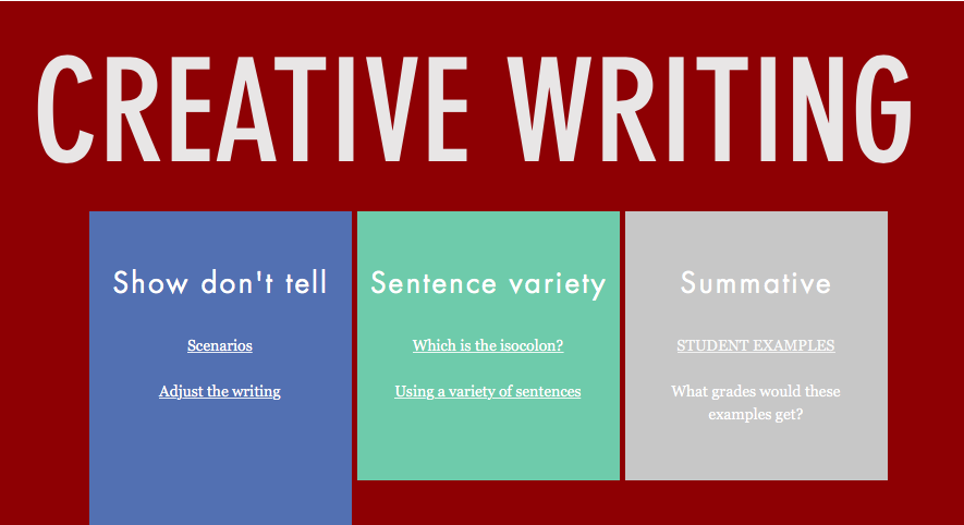 The selection of content is based on the most important elements in the course; the distinct parts that make up the summative test. As an examiner, I have the advantage of practising marking students’ work to criteria, and acquiring a strong understanding of what those isolated parts are that students need to join together and master to demonstrate proficiency. Bearing in mind that the site was set up originally as a support for struggling students, the choice of content was very much pragmatically inspired.