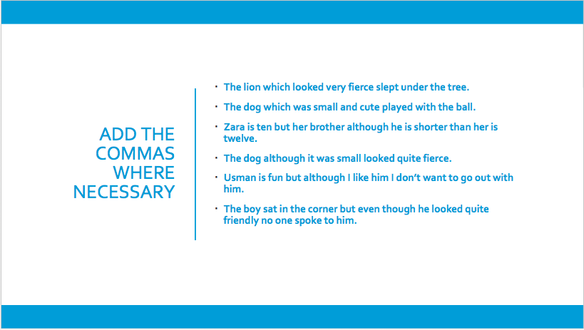 So, I have decided to design my own. I have added a section titled ‘COMMAS’ to my resource website designed for my students, with sequenced activities students can use to develop the knowledge of the individual components required to successfully use commas correctly. Having said that, if you have found something suitable or in fact have your own sequenced scheme, I would really appreciate you pointing me in the right direction, as I think what I have produced is definitely a work in progress. In fact, this is very early doors, with me only implementing it with one of my classes in the last few days. I hope to use this class as a mini research project, but would welcome suggestions or advice if you think I am in the process of exposing my students to further errors.