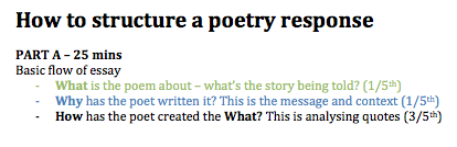 - This is key: don’t try to teach writing structure with new content (a recently studied poem, novel etc). Use simple texts.