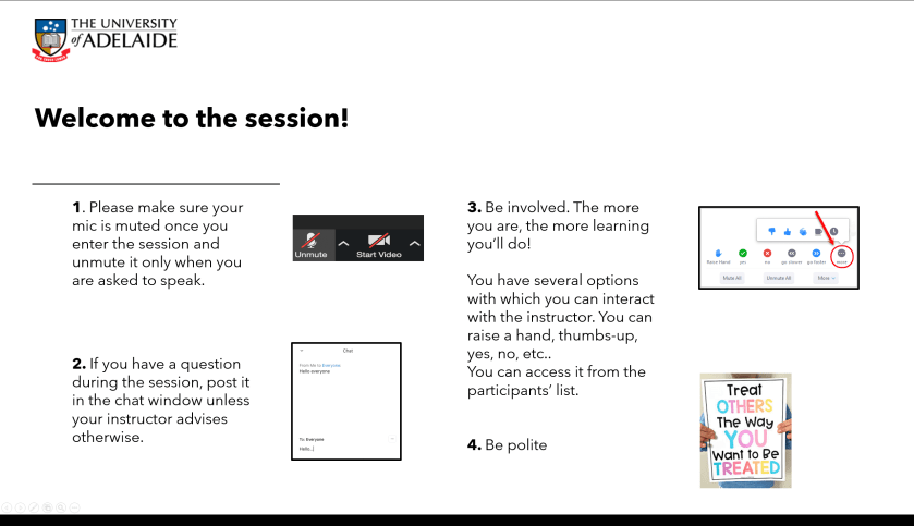 At Adelaide University we have developed a range of resources that will take the academic from the basics of downloading zoom to their computer to being able to proficiently place students into virtual breakout classrooms here. I know many other Universities also have good resources, like this one from UQ. We recommend the following: