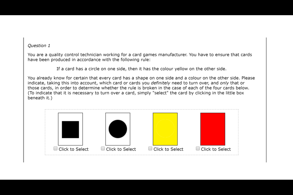 Lots and lots of very smart people get this task wrong. What the experiment shows us is that it’s not how smart we are in being able to solve problems, but how much practice we’ve had related to the problem. So designing appropriate questions in an exam is crucial if we want the results to provide strong inferences about our students’ learning.