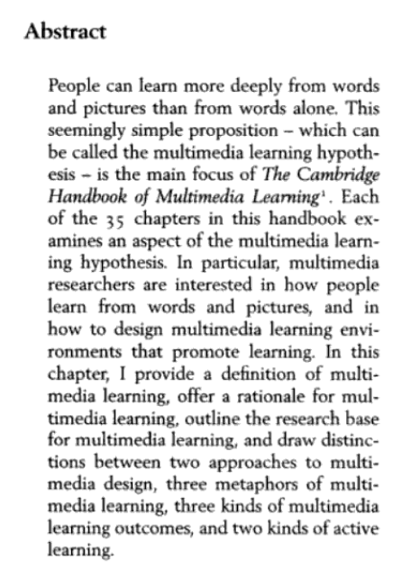 Richard Meyer’s Multi-media Principles are of enormous importance to instructional design. Based on Sweller’s cognitive load theory, and Paivio’s subsequent dual coding theory, as the abstract below to his book outlines, the principles attempt to guide the development of visual presentation to maximise engagement and the intended learning from it.