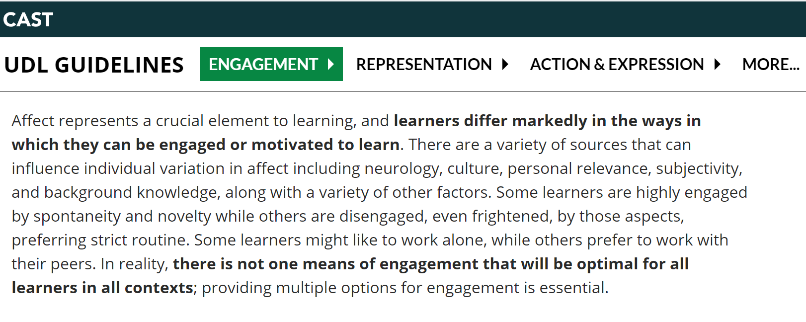 In reading this research paper by Boysen (2021) on Universal Design for Learning (UDL), I couldn’t help but draw a parallel. What was intended to be a way to improve accessibility for learners with special needs, has morphed into something that resembles the exception becoming the rule. The original drive has become something of a maelstrom. It has become an exhortation to provide multiple modes of access and multiple modes of expression to all learners, strikingly akin and equally as incorrect as the exhortation to providing multiple modes of access and expression to satisfy learning styles.