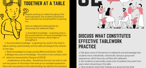 Group work as a pedagogy has a host of benefits. From a cognitive perspective, the interaction with and evaluation of others’ ideas can help confirm